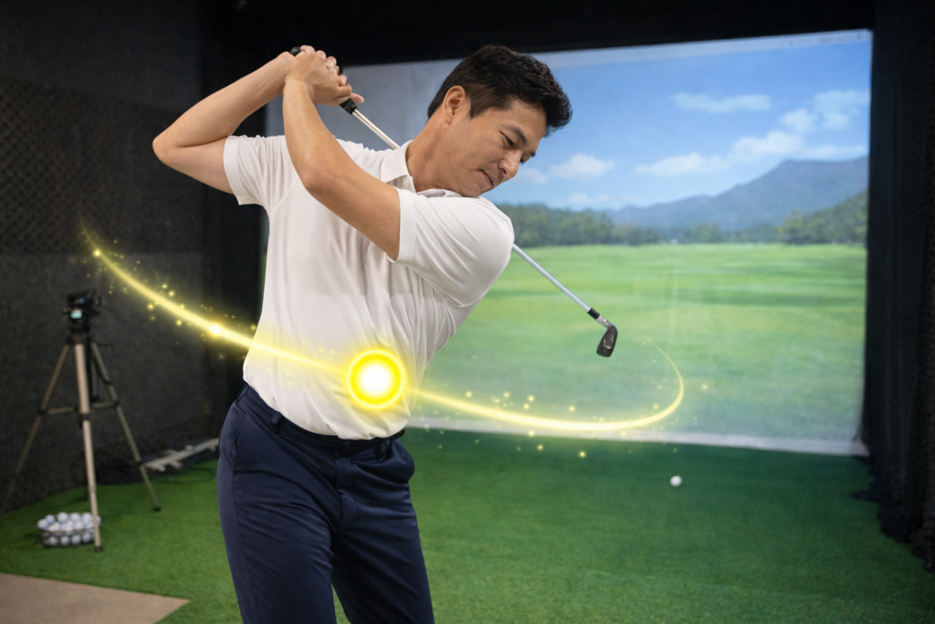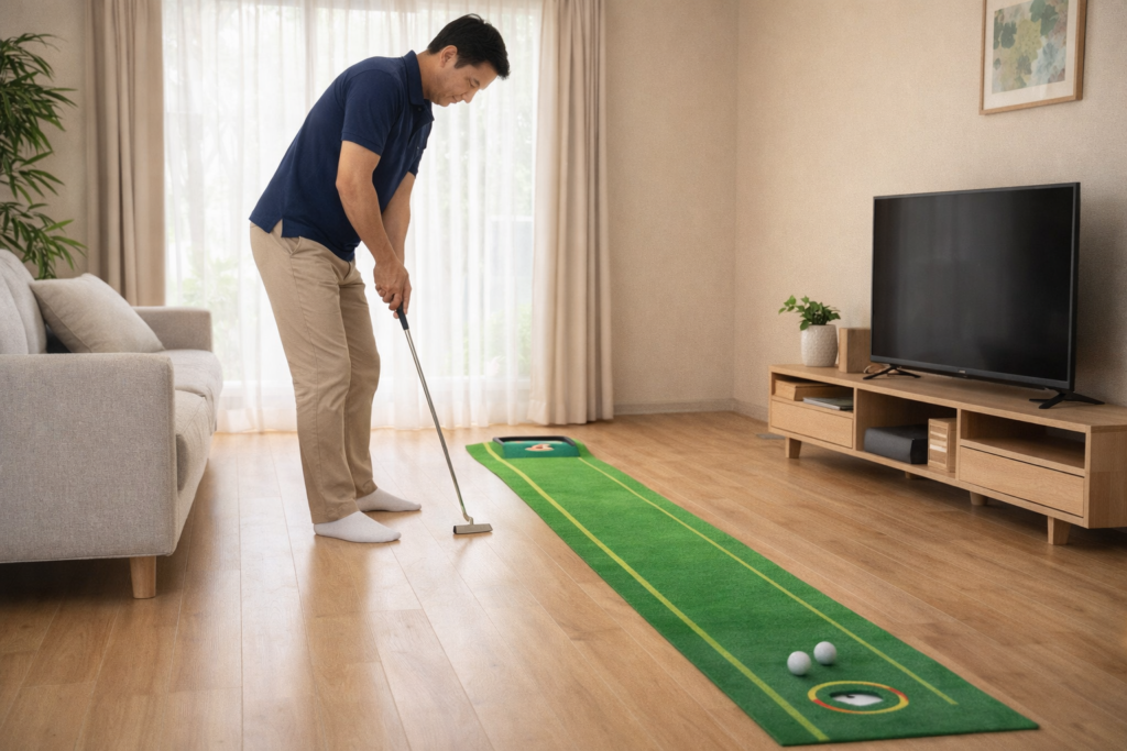 - ラウンド前のスイング調整に
